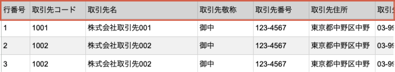 ファイルの1行目に列名の行を用意する。